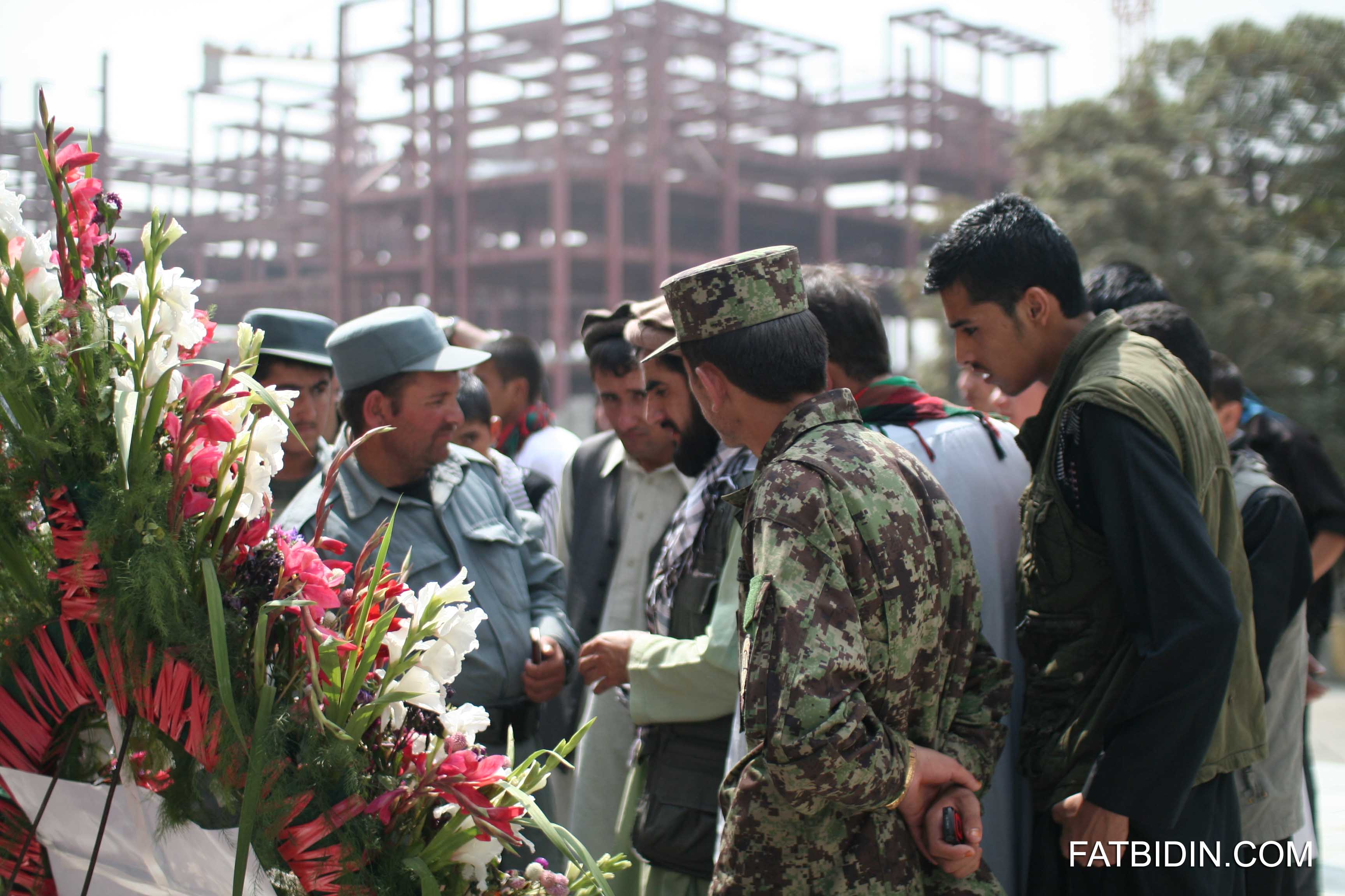 - Representatives from the Afghan National Police and the Afghan National Army pay their respects to the fallen tribal leader at Massoud Square.