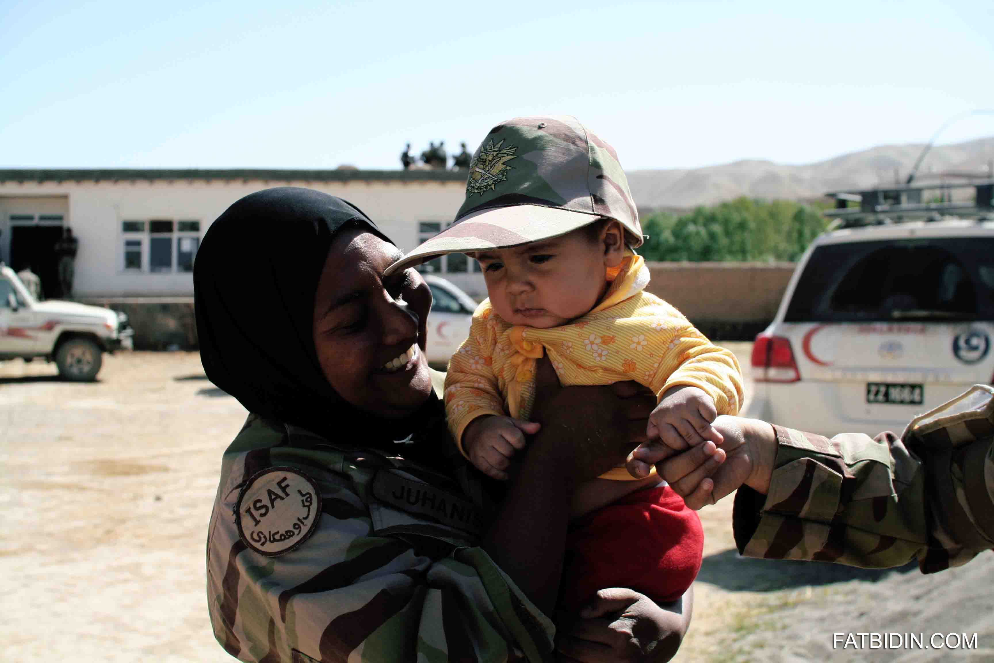 - Capt. Dr Juhanis Safira Johari playing with a local Afghan baby.