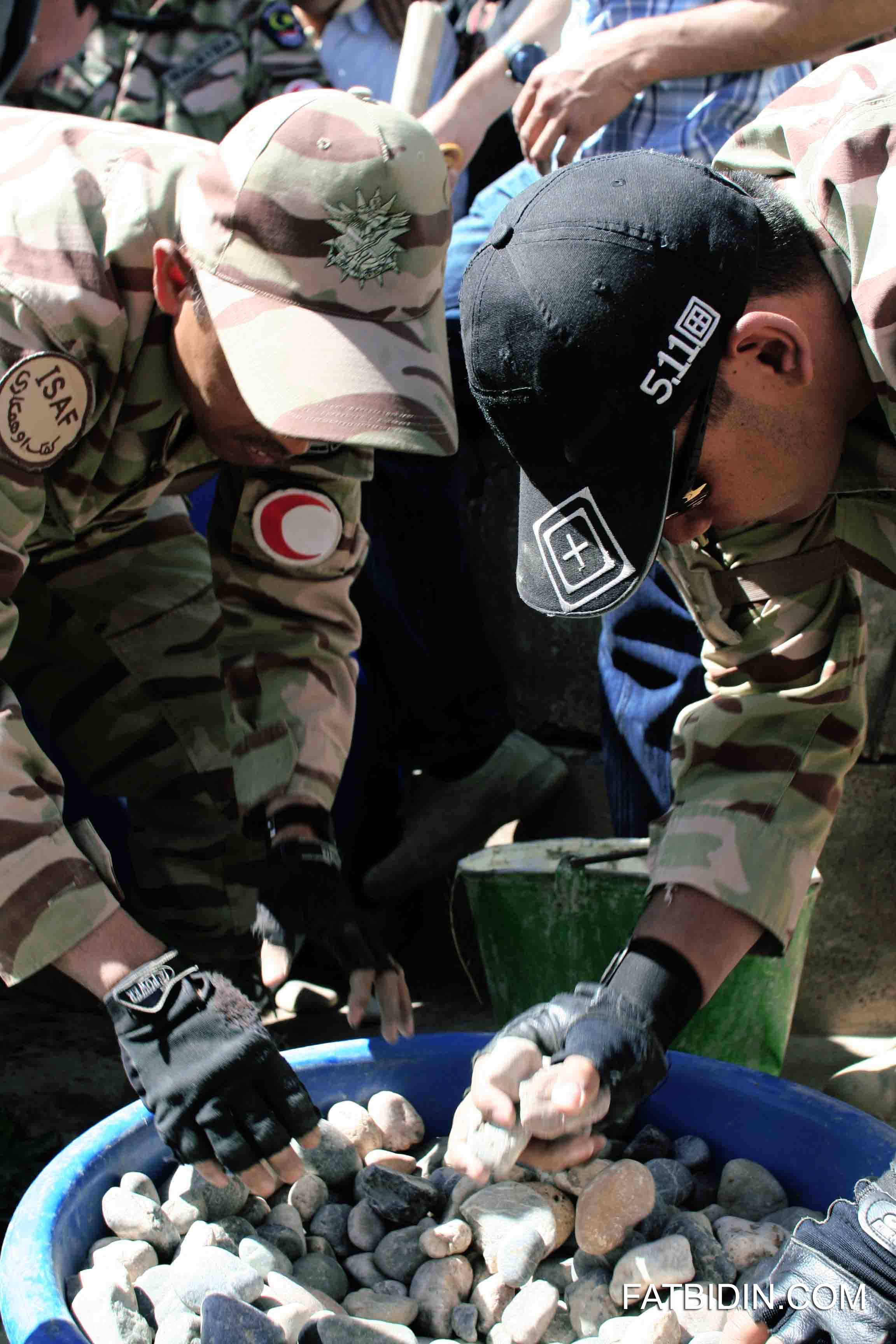 A group of villagers had already gathered and the commander was informed that the local mullah, Ali Muhammadi, had also arrived. One of the mullah’s men rushed inside the school block to call him. When the mullah came out, the commander greeted him and they proceeded to brief the crowd that had gathered. The main reason the mullah was involved is to convince the villagers that what the Malaysians came here to do is for the benefit of the village.