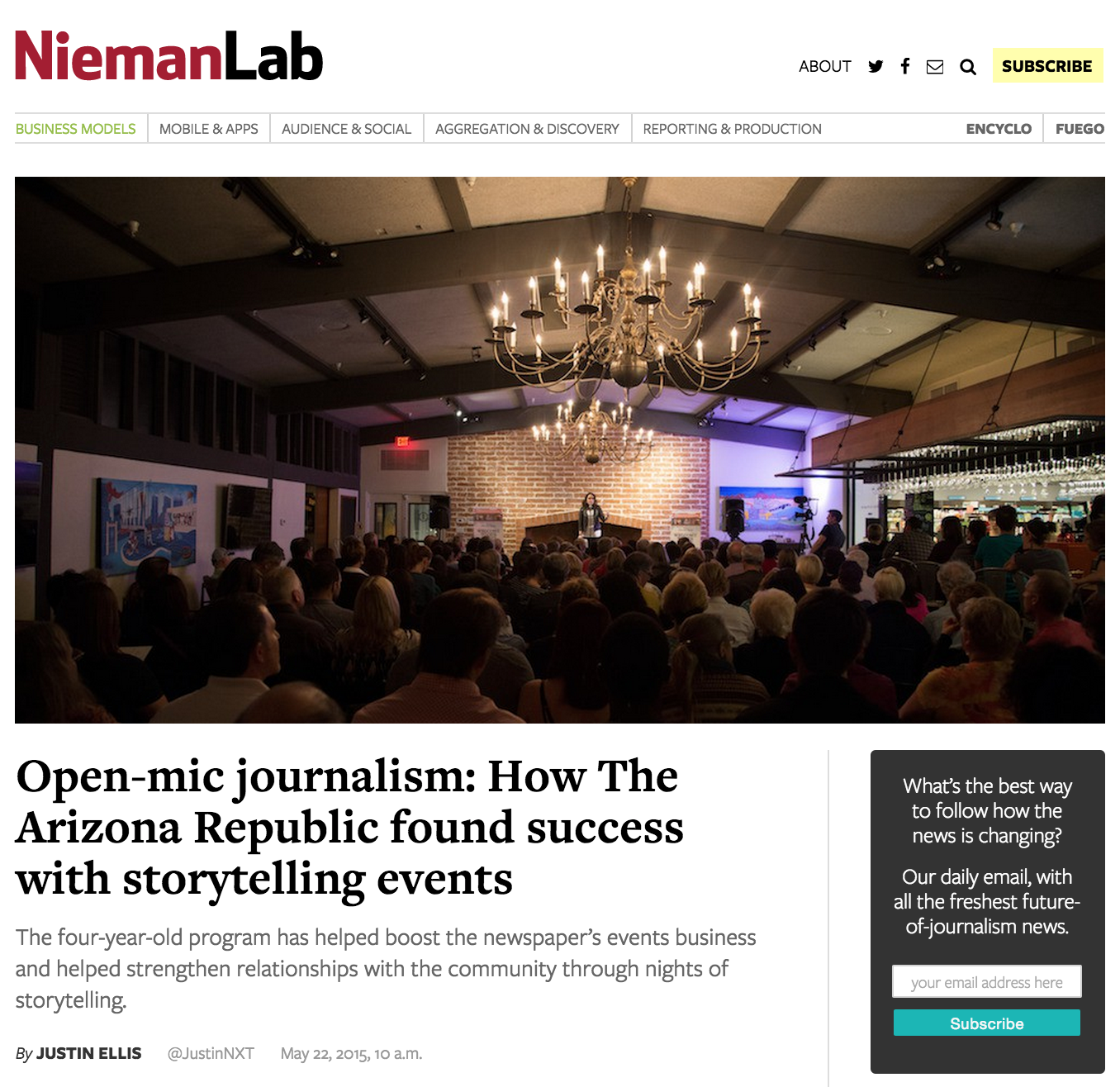 I’ve always been a fan of non-fiction storytelling podcasts like The Moth and Risk! and so reading how The Arizona Republic newspaper has started experimenting with live journalism storytelling nights in front of an audience seems to me like a really cool idea.