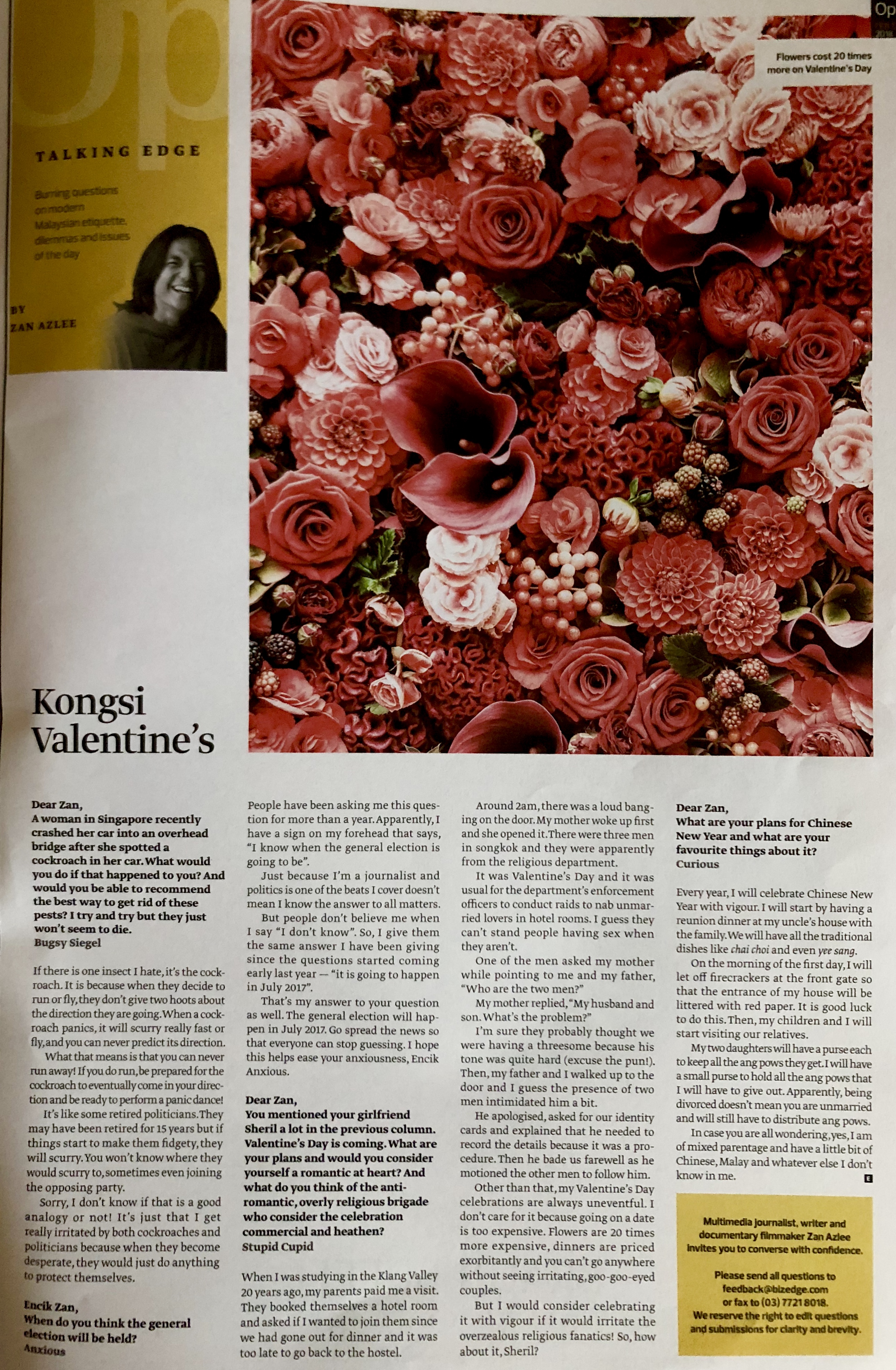 If you have a burning question that you would like me to answer in my Talking Edge column at Options, The Edge, post it here or e-mail to feedback@bizedge.com or zanazlee@gmail.com now!