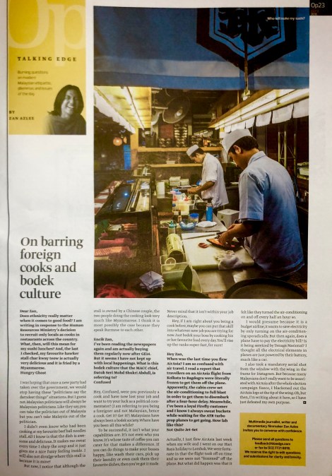 On barring foreign cooks and bodek culture