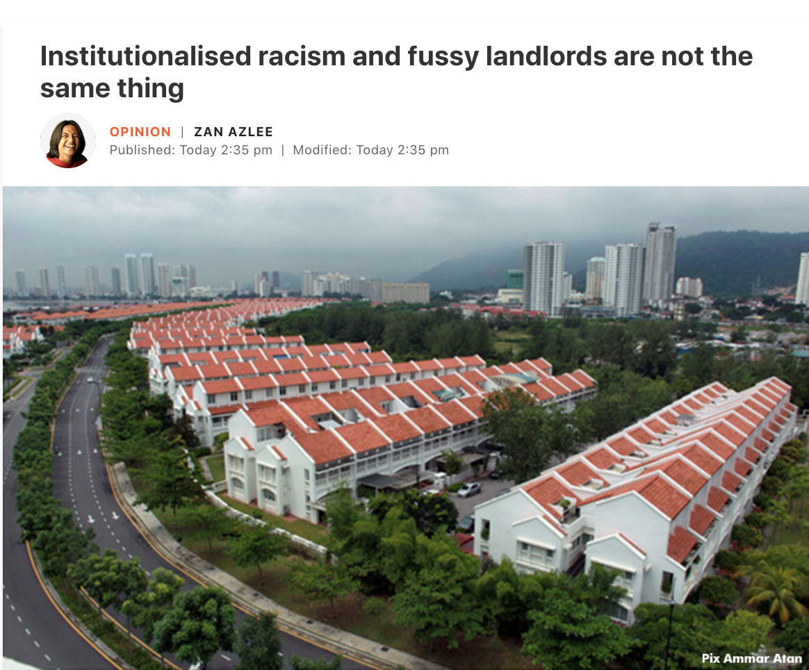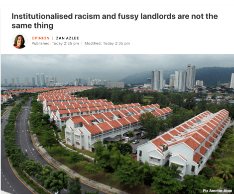But let me explain my position. I feel that there is a big difference between something like racist-sounding rental advertisements and institutionalised racism in the government (ie, bumiputera affirmative action).