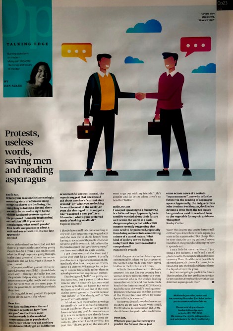 If you have a burning question that you would like me to answer in my Talking Edge column at Options, The Edge, post it here or e-mail to feedback@bizedge.com or zanazlee@gmail.com now!