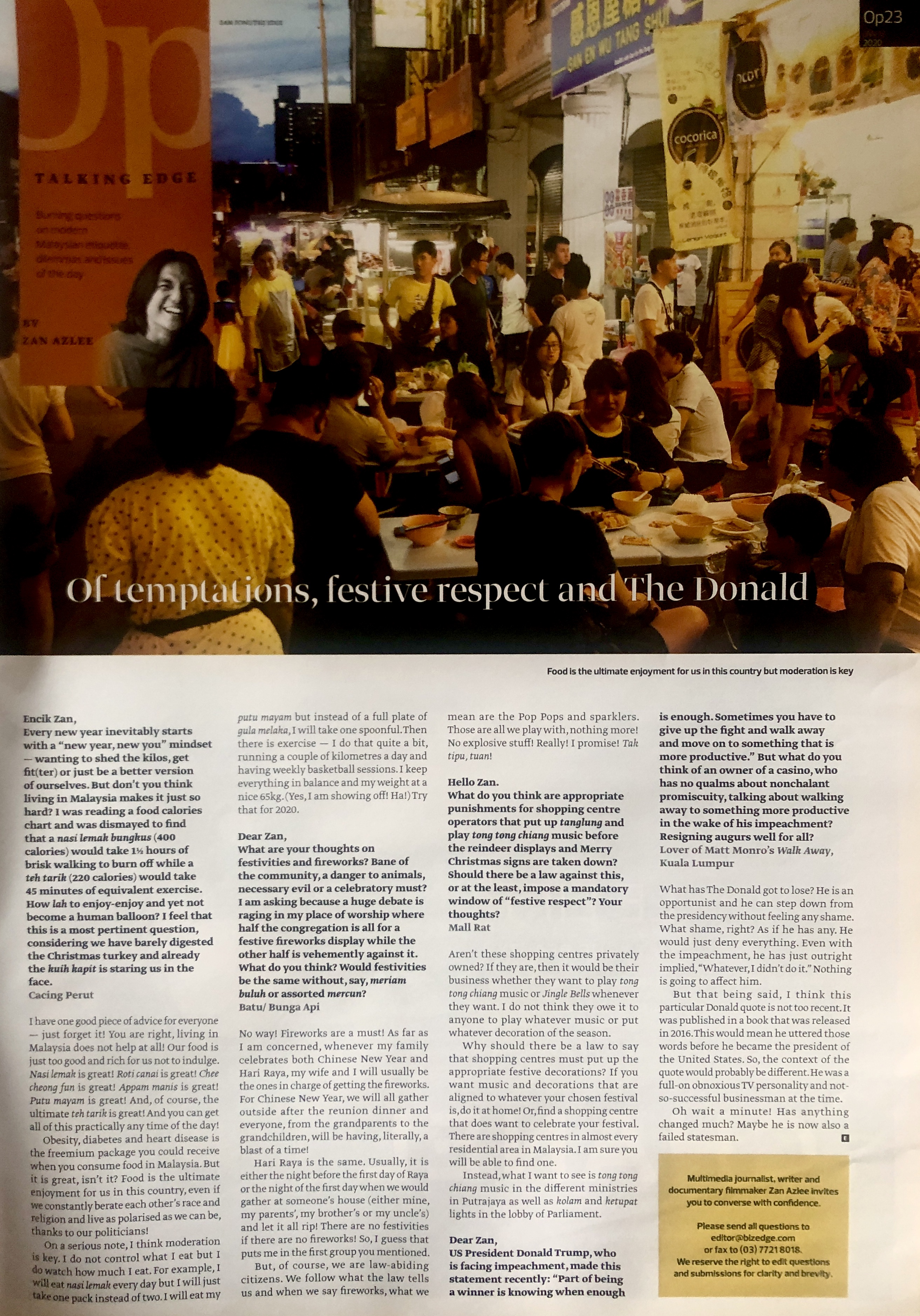 If you have a burning question that you would like me to answer in my Talking Edge column at Options, The Edge, post it here or e-mail to feedback@bizedge.com or zanazlee@gmail.com now!