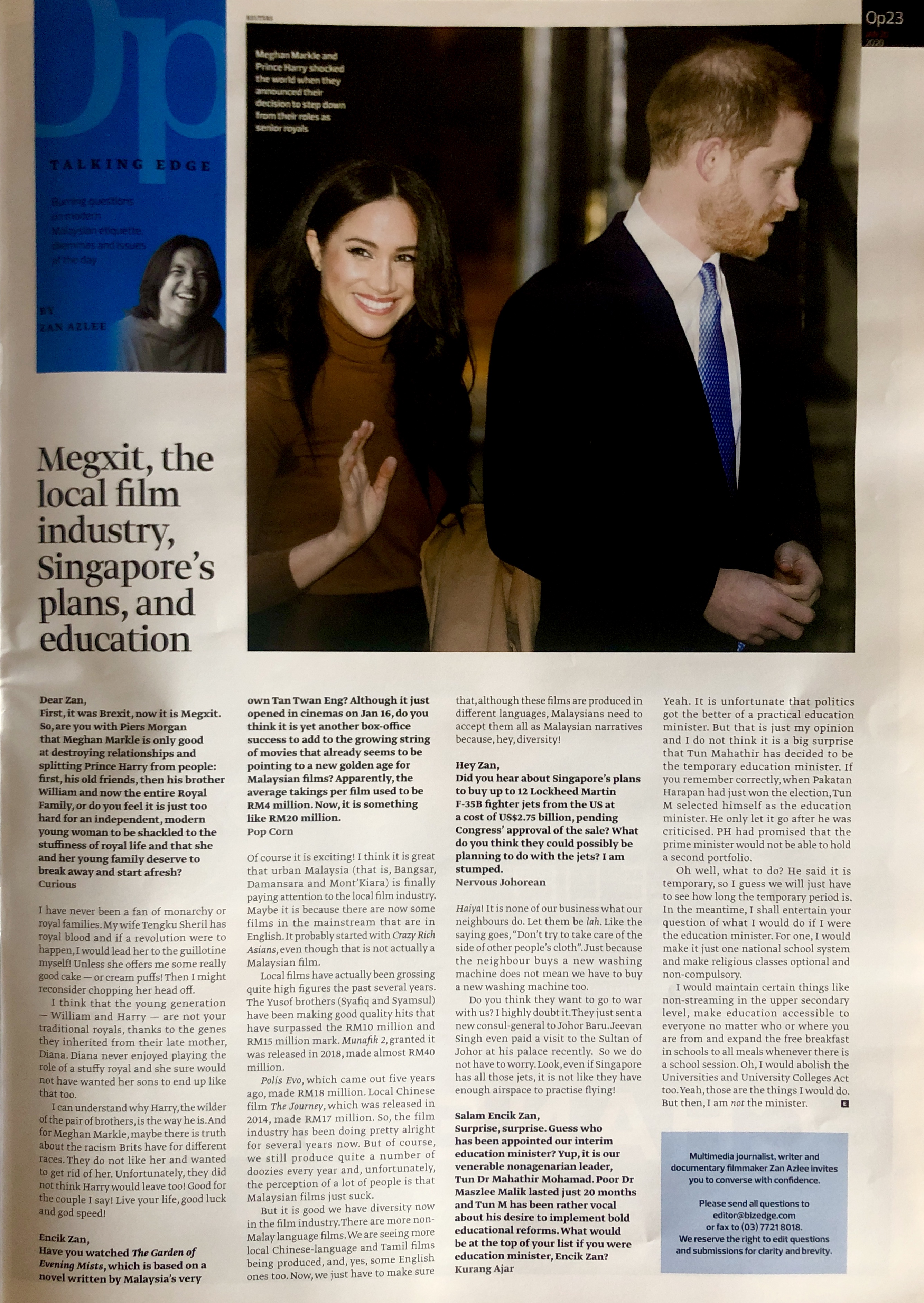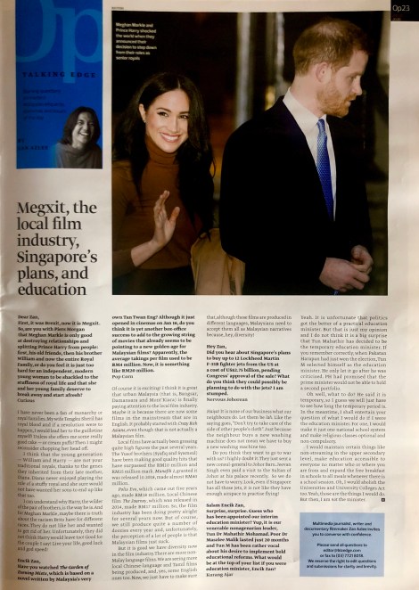 Megxit, the local film industry, Singapore’s plans and education