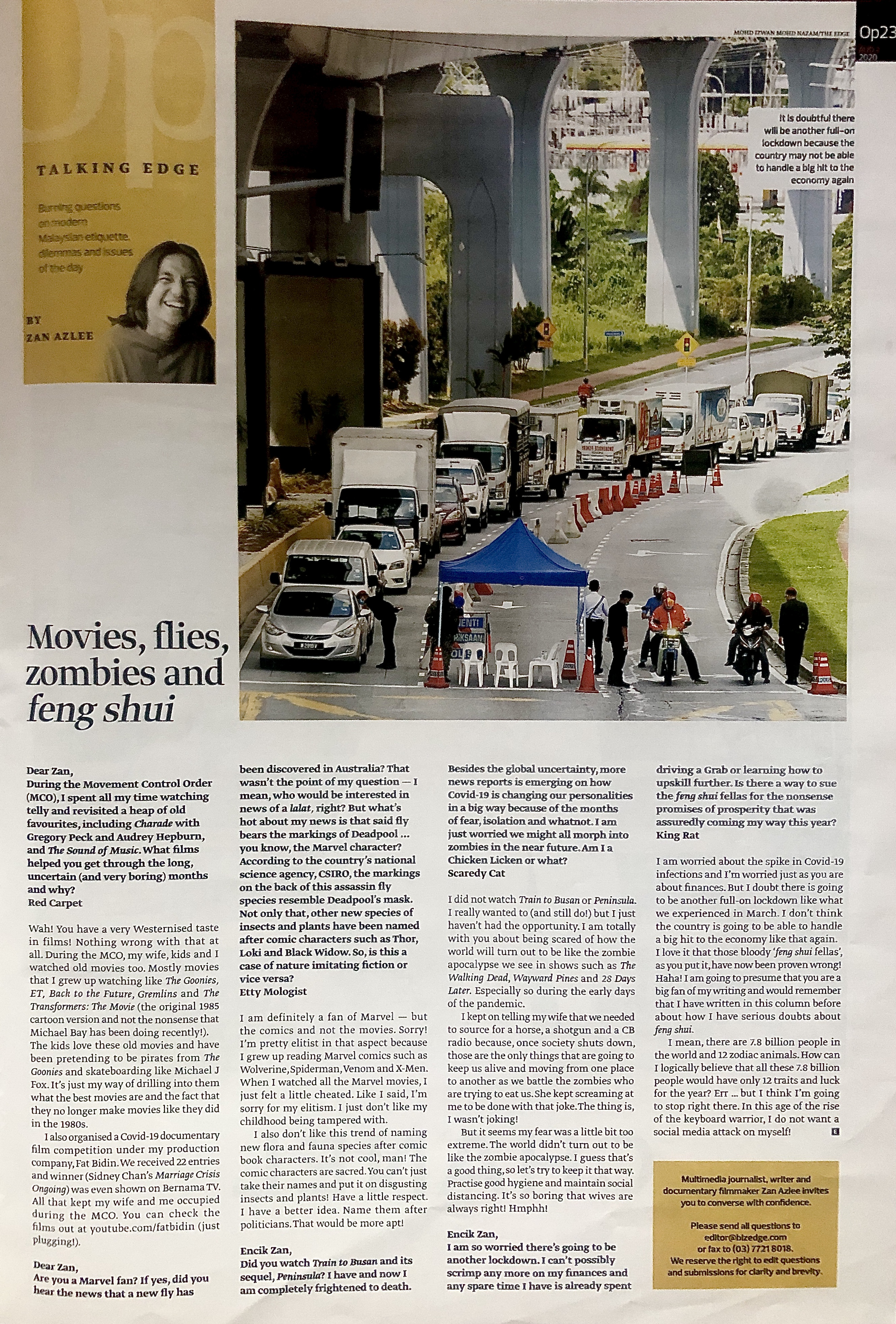 If you have a burning question that you would like me to answer in my Talking Edge column at Options, The Edge, post it here or e-mail to feedback@bizedge.com or zanazlee@gmail.com now!