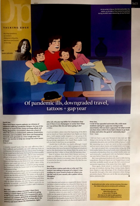 Of pandemic ills, downgraded travel, tattoos + gap year