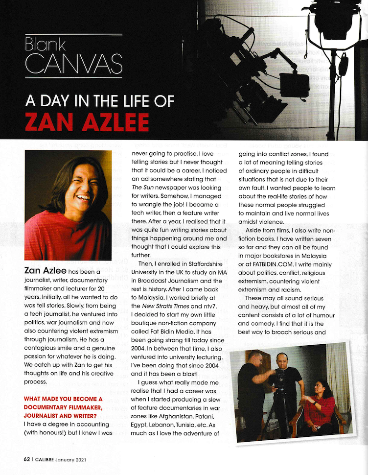 So Calibre magazine did a feature on Zan Azlee in their January 2021 issue. Nothing much… just a day in life of the great Zanster! Muahahaha!! Click on the images above to read if you want.